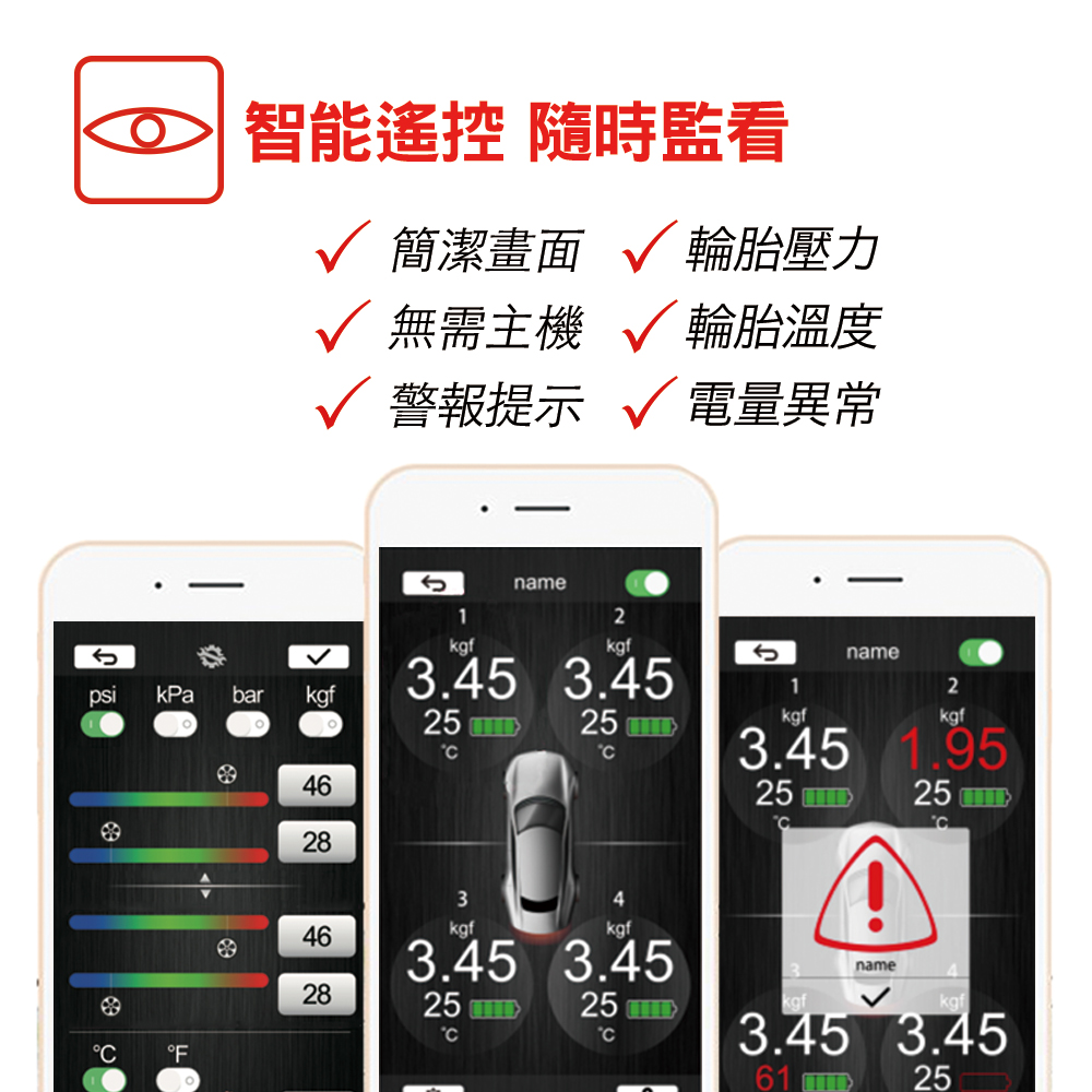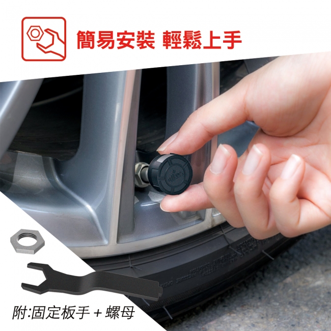 套件內容:胎壓偵測器*3組、固定螺母*3組、CR2032電池*3組、固定板手*1組、原廠保固卡、產品簡易說明書