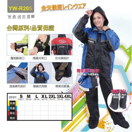 R205 超輕量運動風雨衣 (黑/灰)