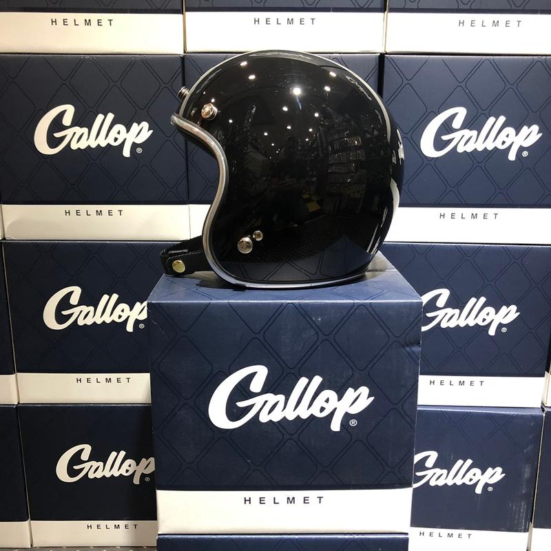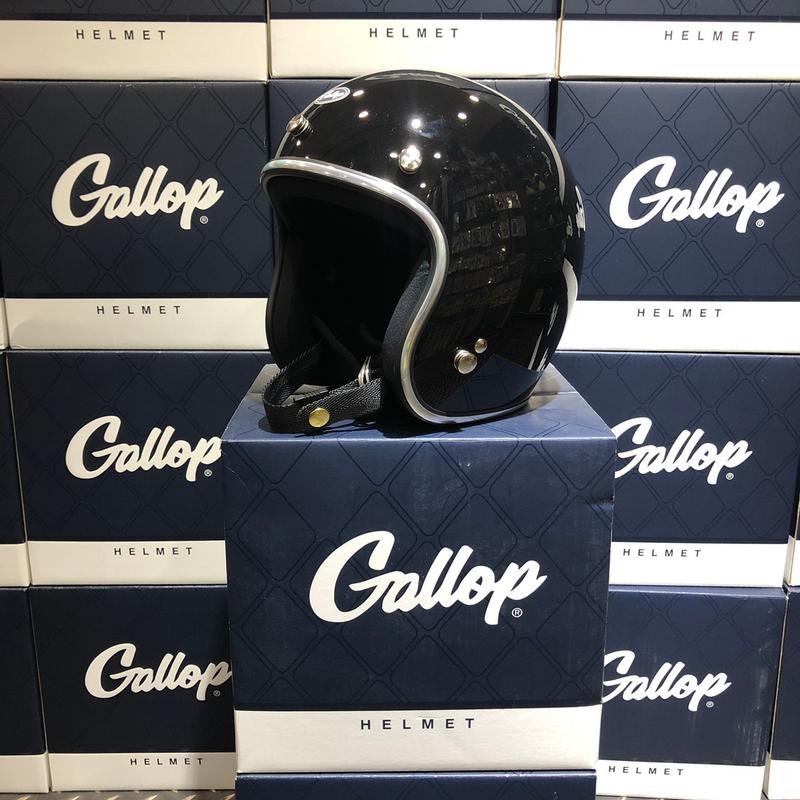 四分之三復古安全帽 亮黑色/銀邊