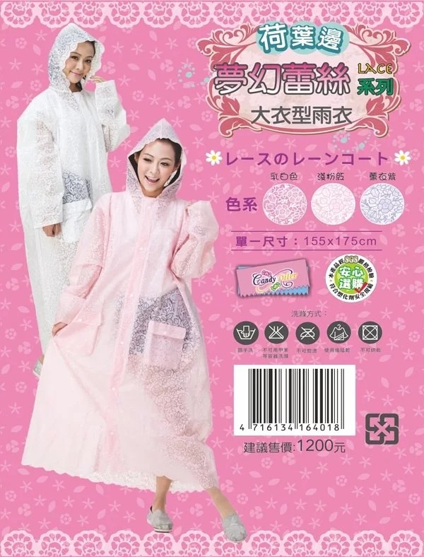 夢幻雷絲大衣型雨衣 (粉紅)