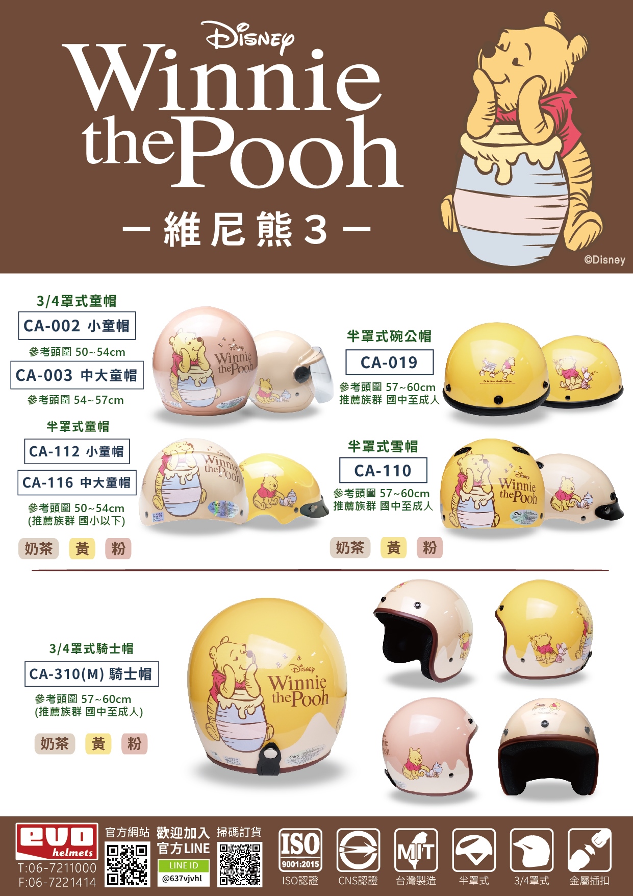 騎士帽 (M) 維尼3-杏粉