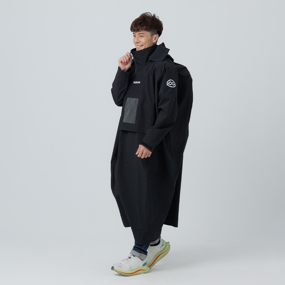 背包款-ACE半斜開雙拉鍊防水透氣連身式雨衣 (黑)