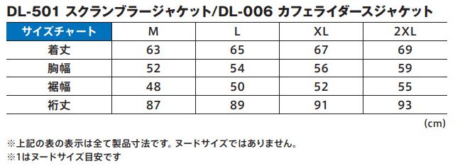 您所查詢的商品 【DAYTONA】DL-006 CAFE Riders騎士外套 ,由原廠提供之尺寸表為 M L XL 2XL 衣長 63 65 67 69 胸寬 52 54 56 59 衣寬 48 50 52 55 袖長 87 89 91 93 袖長為領口至袖口的長度,以上單位皆為公分