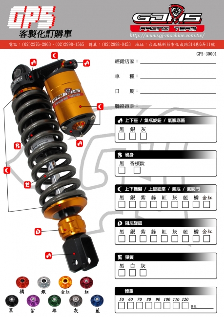 備 註:    預載可調、壓側可調、阻尼(伸側)可調