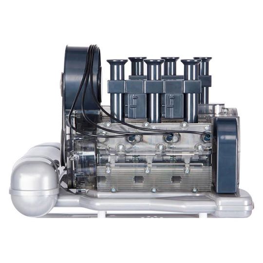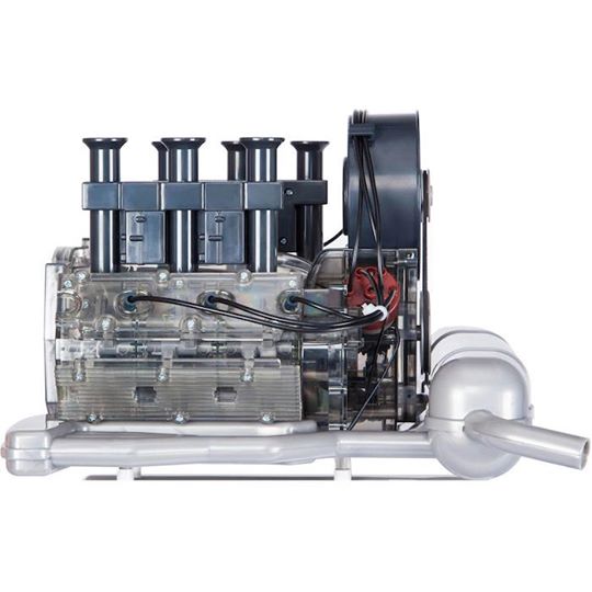 這個高品質的套件是從車廠原始圖紙生產的。通過透明殼體可以觀察到凸輪軸,活塞和閥門的操作。 LED燈模擬點火火花。這款獨特的模型套件可為您帶來極多樂趣。