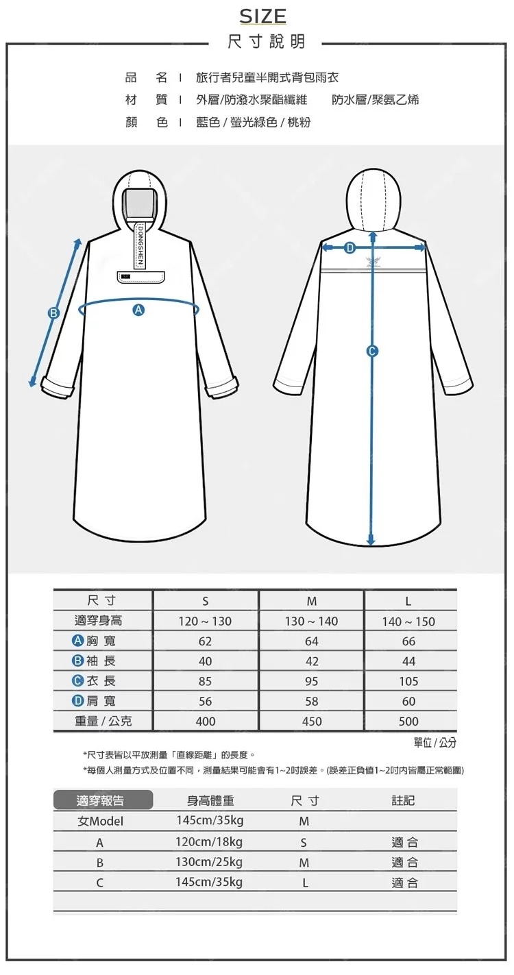 尺寸:XS、S、M、L