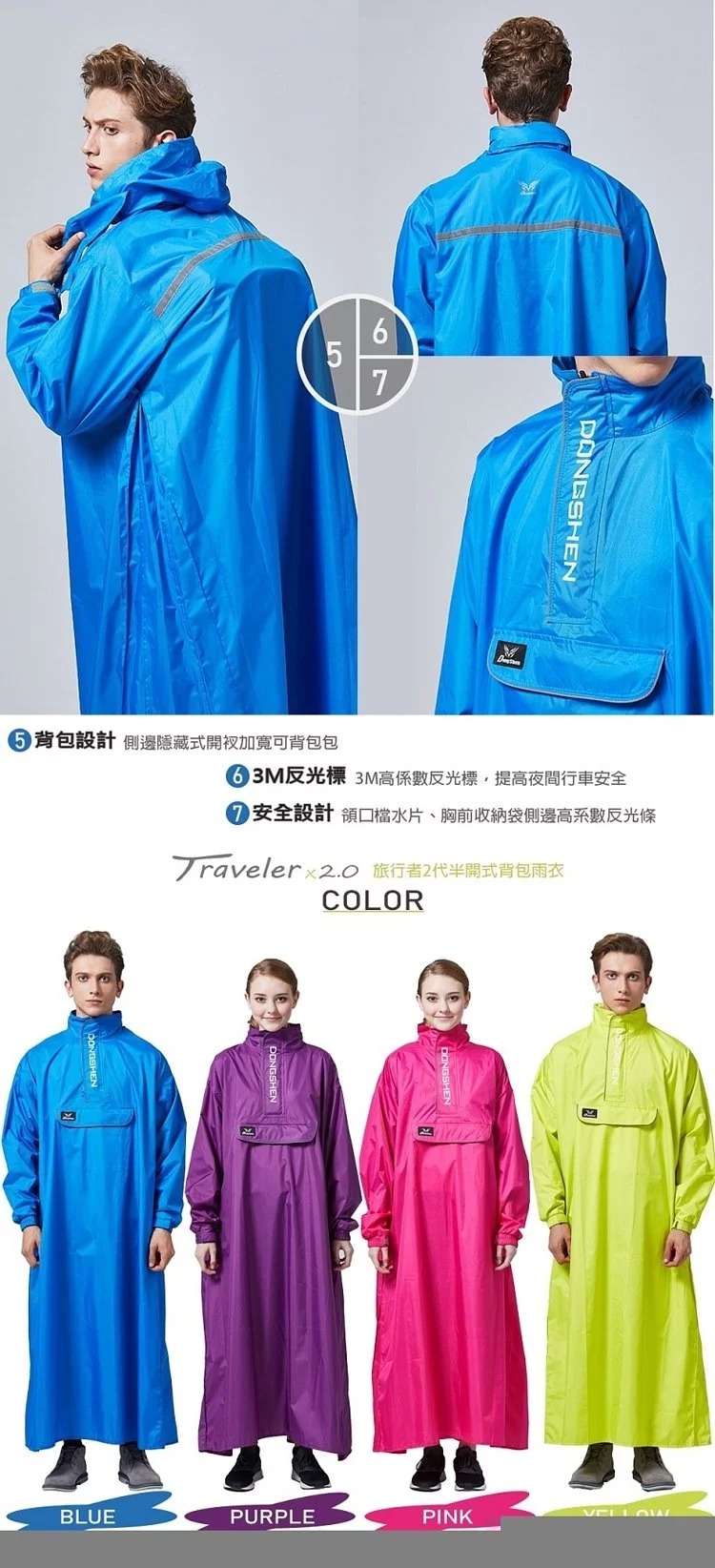 ●全套雨衣車縫處使用防水膠條密合