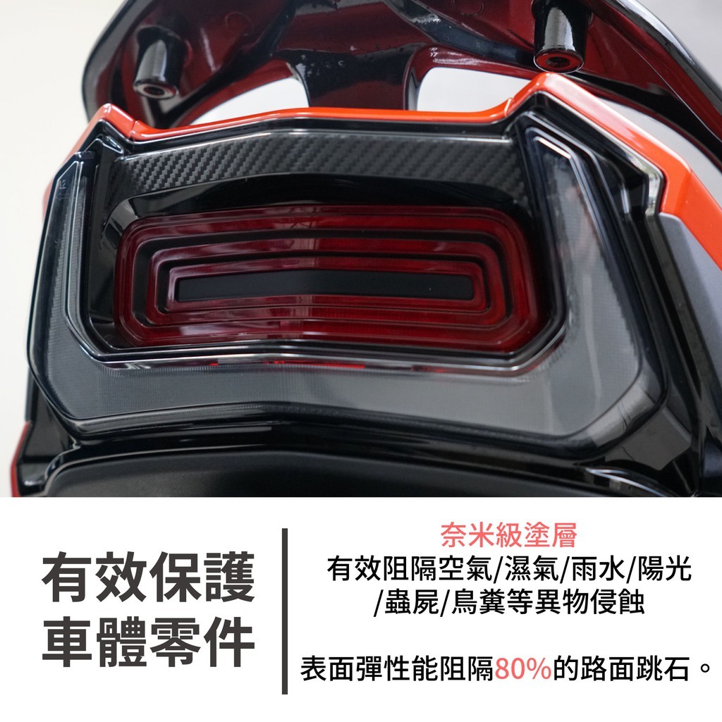 .奈米級塗層,強力阻隔空氣、濕氣雨水、陽光、蟲屍、鳥糞..等異物,同時更可阻隔80%的路面跳石。